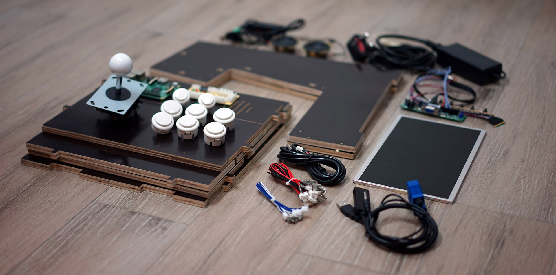 1 x RetroCade Kit 1 x Raspberry Pi 3 Model B + with power supply 1 x 64GB Micro SD Card 1 x 10.1" LCD Monitor or 1 x 21.5" LCD Monitor 1 x stereo speakers (USB powered) Joysticks and ButtonsWhat you will be bringing home.